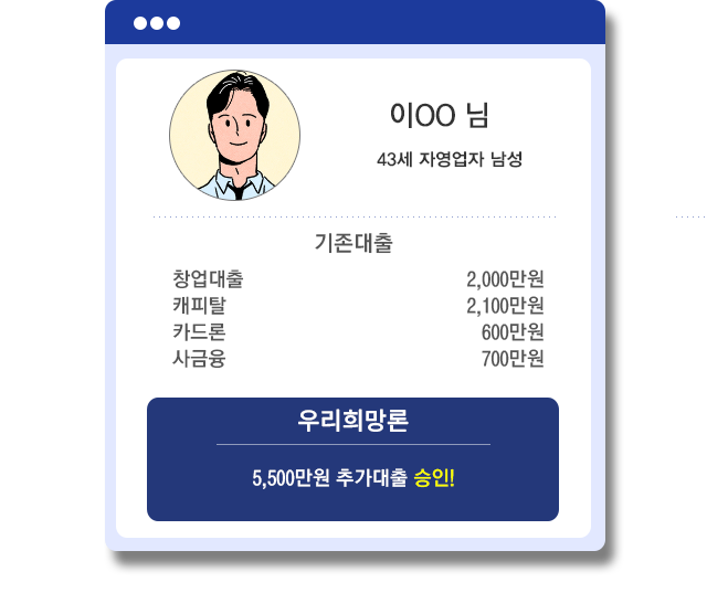 대출금리 : 최대 연 20%이내, 신용도에 따라 차등적용 단 2021년 7월7일부터 신규체결, 갱신, 연장되는 계약에 한함|본 상품은 담보대출과 신용대출 상품입니다.